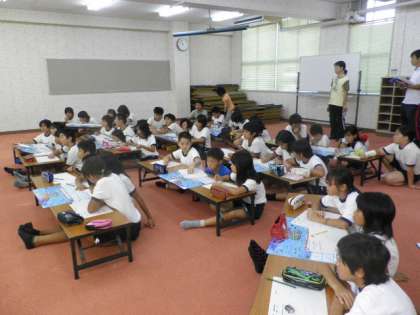 5年生は、自分たちの地域の産業を知ると同時に、命をいただいて生きていることを考える学習を続けています。9月25日(水)に大阪市漁業組合の組合長さんに来ていただき、大阪湾の魚について話をしていただきました。たくさんの魚が生息していることに驚いていました。