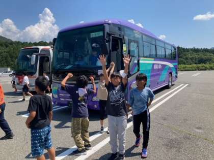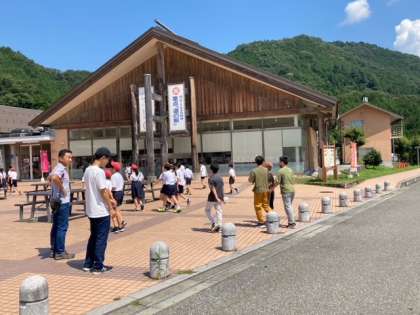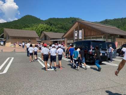但馬まほろばに着きました。みんな元気です。晴天で暑いです。ここからハチ高原に向かいます。