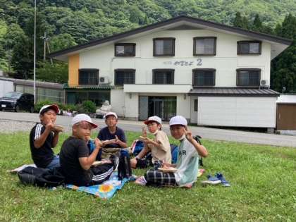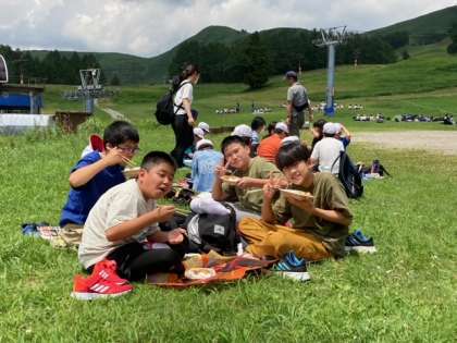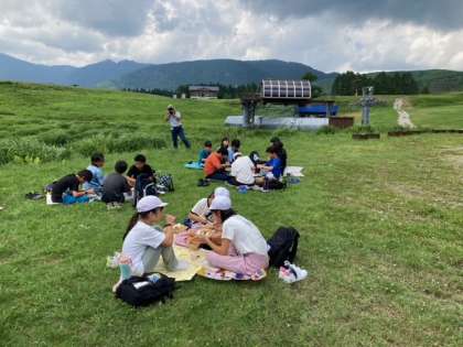 お昼ごはんは高原でお弁当を食べました。大自然の中で「いただきます!」。