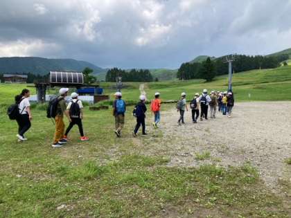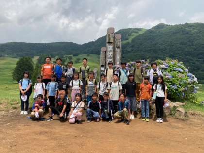 昼食を終えて、登山開始です。途中のモニュメントで記念写真を取りました。お互い声をかけ合いながらがんばります。