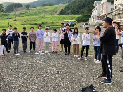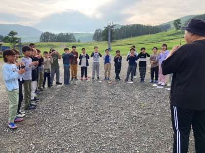 夕食前に夕べのつどいを行いました。昼の楽しかった活動の振り返りとゲームを行いました。