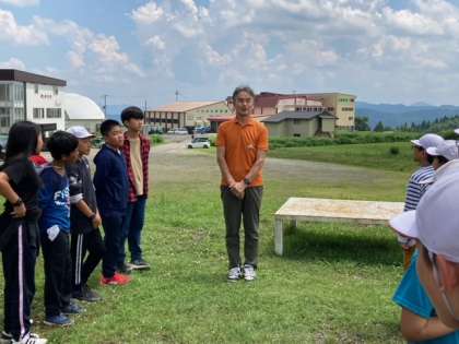 ハチ高原での最後のプログラムは「閉舎式」です。司会者の進行で代表児童によるあいさつをし、宿舎の方からごあいさつをいただきました。「閉舎式」後、大阪に向けて出発しました。