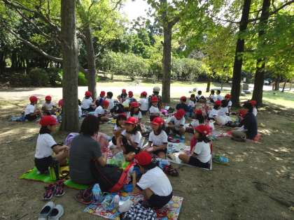 自然史博物館を見学した後、池の近くでお弁当を食べました。その後、どんぐり拾いをしました。たくさんの花や植物があって、気持ちがいい1日でした。