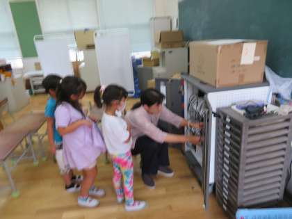 まずは、充電保管庫から、自分の1人1台学習者用端末を取り出しました。