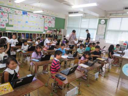 パスワードを入力し、1年生全員が、初めて自分でサインインすることができました!『学びのポータル』から、デジタルドリルにも少し挑戦。最後の片付けまでばっちりでした。(^o^)v