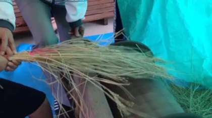 ドラムについた歯に、モミが当たり脱穀されていきます。