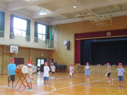 ゴール、決勝の「得点係」、縁の下の力持ち「準備係」。「開閉会式」の係児童は、運動場で行進の練習をしていました。体育館には「応援団」の元気な声が、響き渡っていました。