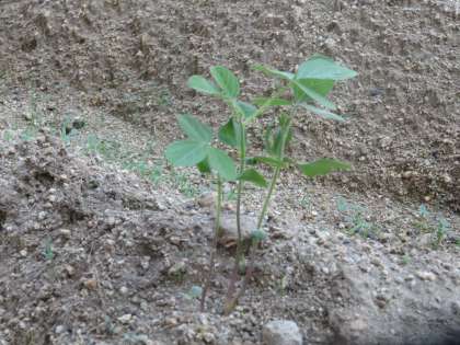2年生の教室前の畑では、サツマイモと枝豆を育てています。子どもたちは毎日畑の様子を見たり、水をあげたりしています。収穫が楽しみです。