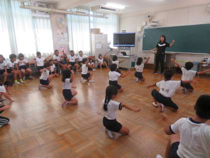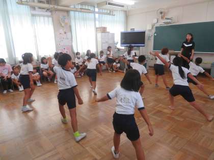 教室で運動会のダンス練習をしました。みんな一つ一つの動きを確認しながら数少ない練習の中でしっかり踊ることができました。