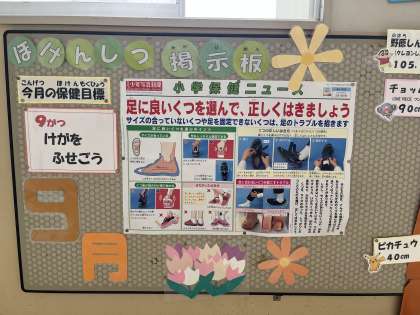 9月のほけんしつ掲示板です。運動会の練習が始まっています。けがの予防をして、体調をととのえ、気持ちよく運動会を迎えましょう。