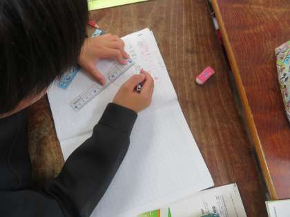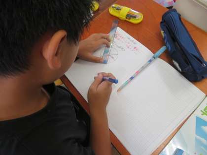 円の中に引くことができる一番長い線を書き、直径について勉強しました。