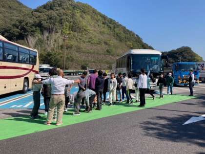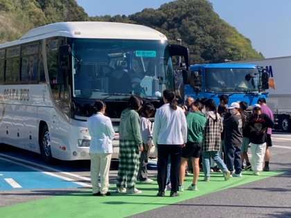 瀬戸PAで休憩をとりました。ここまで少し混んでいましたが、ここから先は順調の予定です。