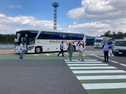小谷PAに着きました。長旅ですが、映画を鑑賞したり、歌を歌ったりして楽しく過ごしています。広島まであと少しです。