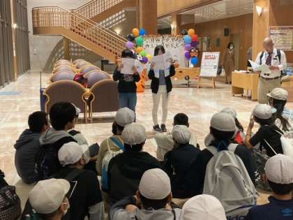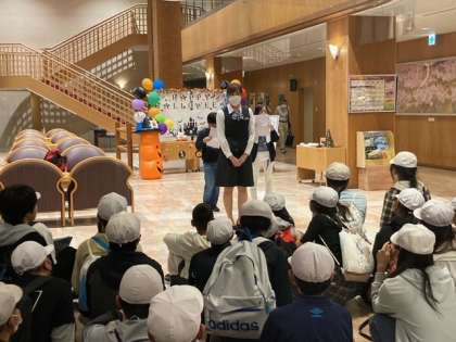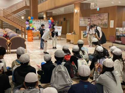 宿舎に到着しました。司会児童の進行で入舎式を行いました。代表児童から宿舎の方にごあいさつをしました。宿舎の方からもごあいさつをいただきました。宿舎での活動が始まりました。