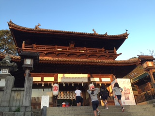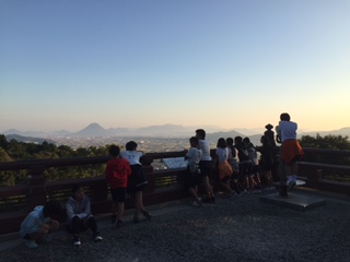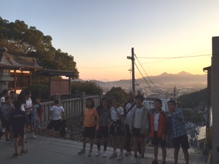 朝食前の金毘羅山。本宮までは785段の階段があります。全員が上にのぼることができました。