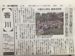 今朝、1社の香川県版に載った新聞を児童分いただきました。修学旅行のいい記念になると思います。