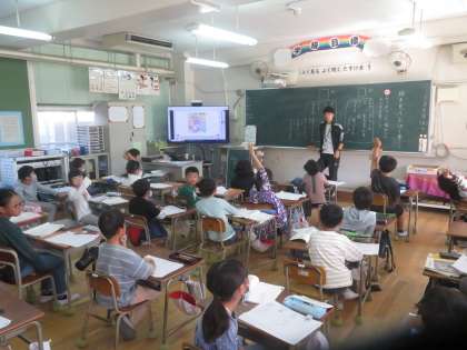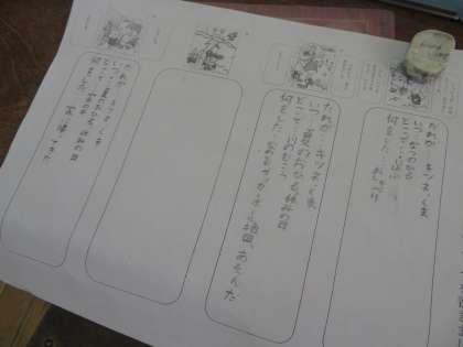 第2場面と第4場面の絵を見て、第3場面のお話を考えました。