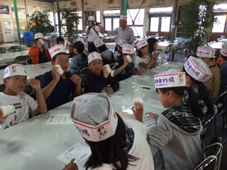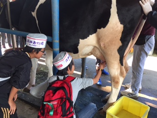 淡路島牧場では、牛の乳しぼり体験、バター作り体験ををしました。新鮮な牛乳の試飲・バターの試食もすることができました。