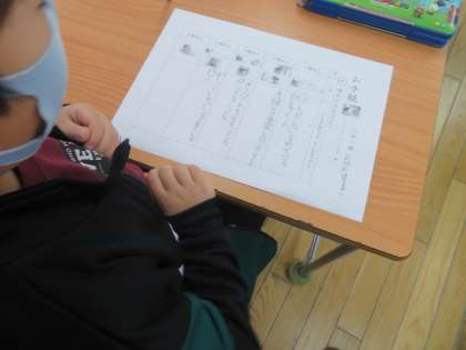 各場面の挿絵を見て、何をしている様子なのかを考えました。