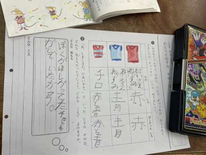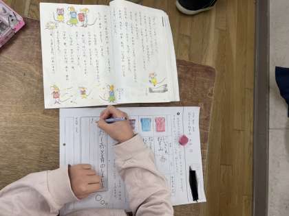 物語を読んで、チロが来ていたチョッキの色をワークシートにまとめました。