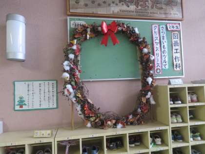 以前作ったクリスマスリースを、玄関入って右手の靴箱の上に飾ってあります。懇談会等で来られた際には、ぜひご覧ください。