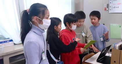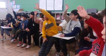 お楽しみ会を開きました。班ごとにおもしろ出し物を用意して臨みました。司会進行も子どもたちが行いました。