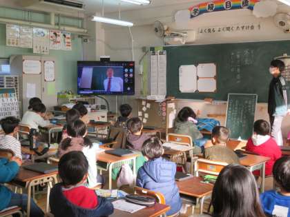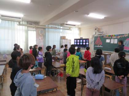 校長先生のお話や冬休みの生活指導、全校で取り組んだ、算数アタックやなわとび大会の表彰も行いました。最後はみんなで校歌を歌い、その歌声が校内に響き渡っていました。