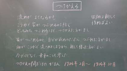 江戸時代に、洪水の多い大和川をまっすぐに掘り直す(つけかえる)治水工事を、するのかしないのか、村人たちの間で長期にわたる話し合いがありました。史実ではつけかえることになりましたが、その時の気持ちになって賛成派と反対派に分かれて意見を出し合いました。