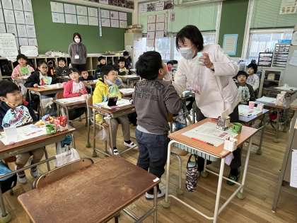 2時間目に学校歯科医の先生と歯科衛生士さんに来ていただき、はみがき名人カードを使用し、第一大臼歯の大切さや正しい歯の磨き方について学習しました。歯ブラシの持ち方や正しい歯の磨き方について身につけることができました。