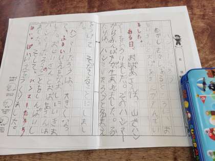 前から取り組んでいるお話づくりの続きをしました。いよいよ本の完成です。