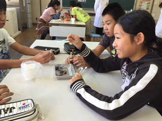 しょうゆ協会の方を講師として、5・6年生対象に授業をしていただきました。「しょうゆマジック(発酵の不思議)」をテーマに、原料(大豆・小麦・塩)からしょうゆのできるまでについて、「香り体験」「諸味(もろみ)の味見体験」「麹菌(こうじきん)の観察」などの体験学習を中心に学びました。しぼりたてのしょうゆの味はどうだったでしょうか?