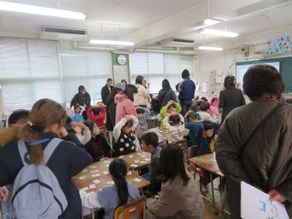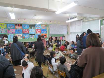 お手玉の腕前を披露。おうちの人に見てもらいながら、カルタもしました。