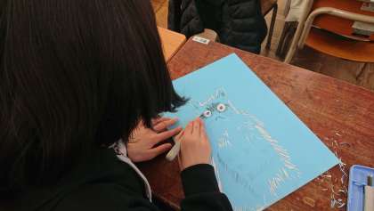 彫刻刀を使っているので怪我をしないように慎重になっています。
