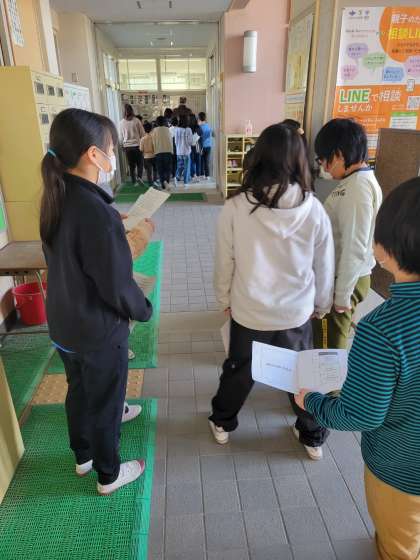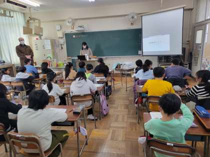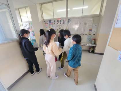 今日は、学校案内をしました。班ごとにお互いのお気に入りの場所に案内しました。