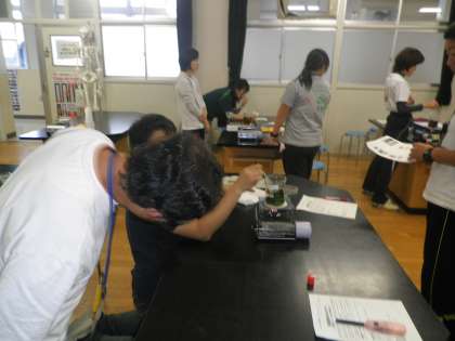 港区内の小学校の理科主任の先生方が集まって、校長先生を講師に理科の実験研修会をしました。本校の教員も参加し、「葉脈標本」を作る方法の講習が行われました。