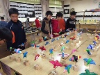 中段:木工の作品です。木彫りでしょうか、小学校ではやっていない作品が珍しかったようです。
