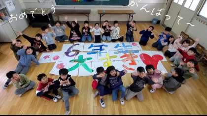 卒業を祝う会がありました。1年生から順にお祝い動画を視聴しました。2年生は「Believe」という歌をプレゼントしました。歌の途中で、お祝いメッセージを言ったり、画用紙を合わせて「6年生大すき」という文字を作ったりしました。