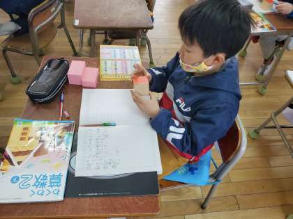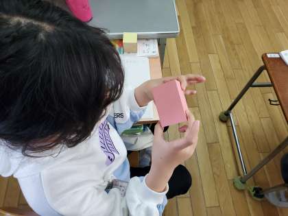 いろいろな箱の形の「辺」と「ちょう点」の数を調べました。