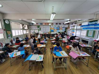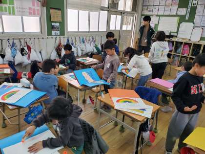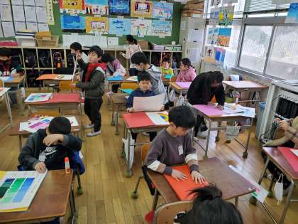 今までの図工作品をまとめて、作品集を作りました。1学期に描いた作品を目にして「なつかしい!」と言っていた児童もいました。
