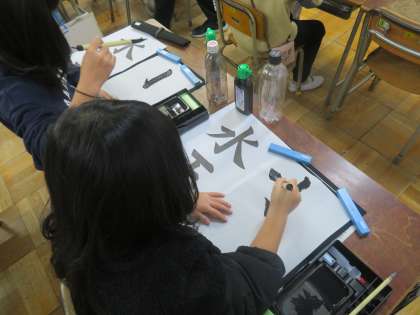 「水玉」という字を毛筆しました。最後の習字の学習だったのではね・とめ・はらいなど今まで習ってきたことを活かして、丁寧に毛筆することができました。