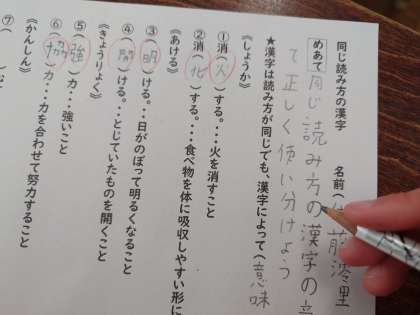 同じ読み方の漢字の意味を考えて正しく使い分けました。