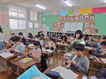 あな(音孔)をしっかりふさがないと高い音が出ないのでとても難しいです。