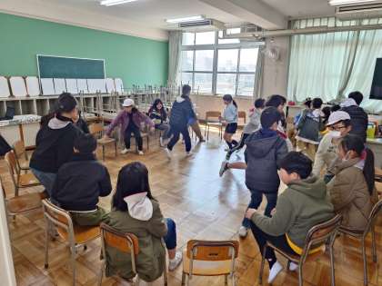4年生最後の日なので、フルーツバスケットをして遊びました。3回鬼になると罰ゲームがあるので、みんな本気を出していました。