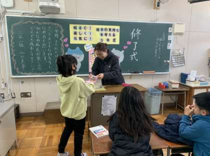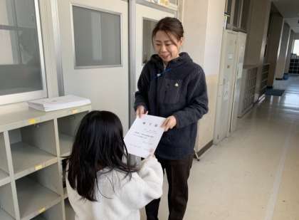 この一年間頑張ってきた子どもたちへ、賞状を授与しました。新学年になっても色んなことに挑戦して頑張ってください。