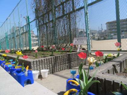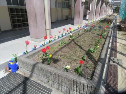 校庭の桜もチューリップも花開いて、