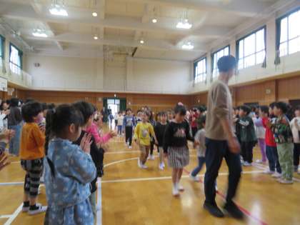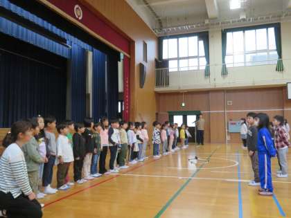 お祝いの言葉や校歌を歌って、新しい仲間の1年生を出迎えました。
