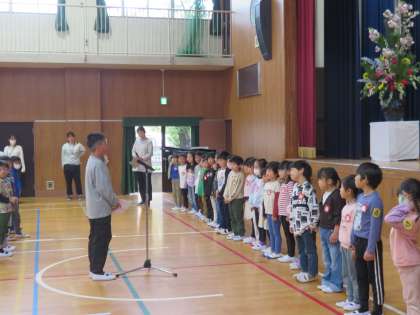 始業式に続いて、新1年生を迎える対面式を行いました。