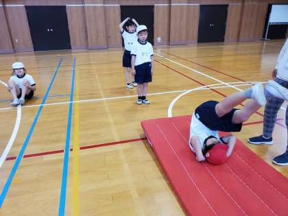 前転と後転の練習をしました。