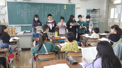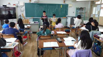 「おにぎり石の伝説」という、とても面白い物語を学習しています。今日は音読をしながら、登場人物の表情を再現してみました。