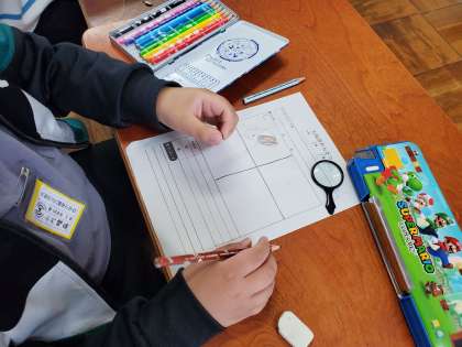 「マリーゴールド」と「ひまわり」の種を観察しました。